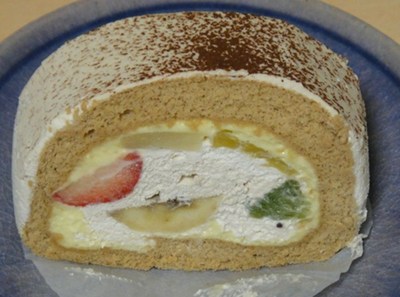 キーウィ・バナナ・イチゴなどのフルーツが入った甘さ控えめの豪華なケーキです。