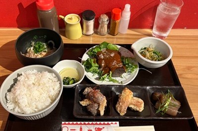 肉汁や秘伝のデミグラスソースがたっぷりで、食べ応えがあります。