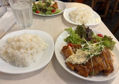 定番の「チキン南蛮」のランチ定食は、甘酢に浸けられた濃厚な南蛮・たっぷりの自家製タルタルソース・大量のキャベツでボリューム満点。