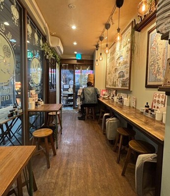 こじんまりとした店内で、温かみのある木目の床にテーブル席とカウンター席が並びます。