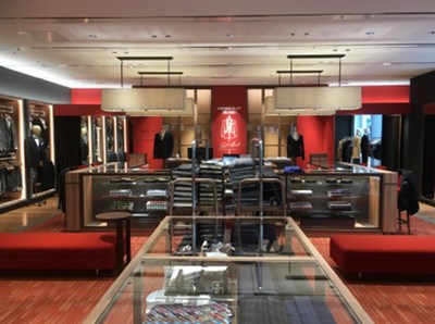 洗練された店内には、シャツやスーツなどがきれいにディスプレイされ、上品でエレガントな雰囲気が漂います。