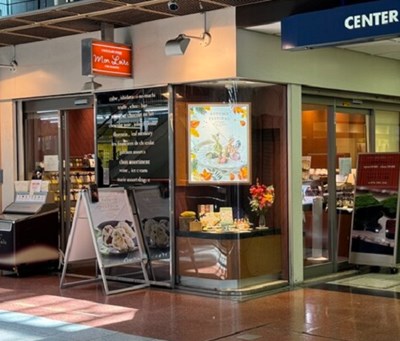 JR三ノ宮駅より徒歩1分のところにある「リンツ ショコラ ブティック&カフェ 神戸マルイ店」。