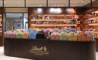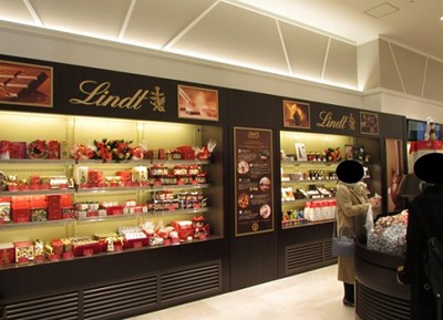 可愛い包み紙が人気の「リンツ ショコラ ブティック&カフェ 神戸マルイ店」
