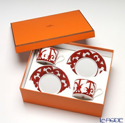 バレンタインギフトのおすすめは、情熱の赤で彩られる「HERMES ガダルキヴィール ティーカップ&ソーサー(ペア)」。