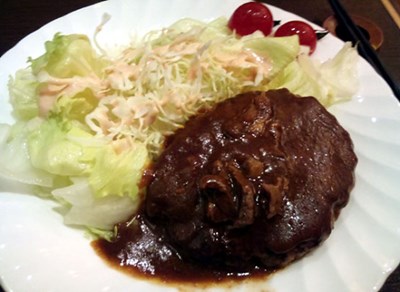 人気の「鉄人ハンバーグセット」は、自家製の国産黒毛和牛ハンバーグに特製ぼっかけデミグラスソースがかかった人気のメニュー。