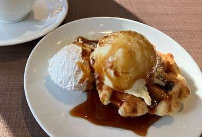 また熱々のワッフルに冷たいアイスがのった「ワッフルアイス」など、充実したフードメニューも人気です。