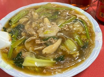 人気の「焼麺(やきそば)」は、表面を香ばしく焼いた中華麺に野菜がたっぷり入った特製の餡をかけたもの。