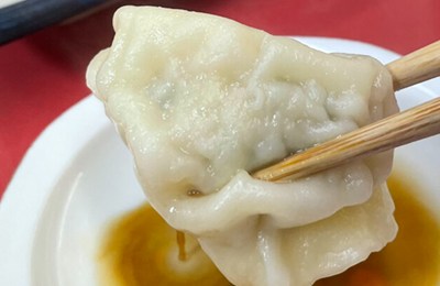 名物の「三鮮水餃子」は、肉・野菜・海老が混ざり合った具材を、厚みのある自家製の皮で包んだ水餃子。