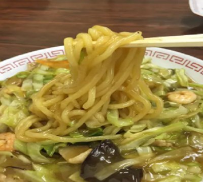 カリカリの食感の麺が、餡と絡んでやわらかく変化します。