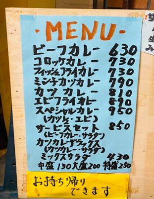 スパイスが効いた辛めの味付けの「カレーライス」のみ。
