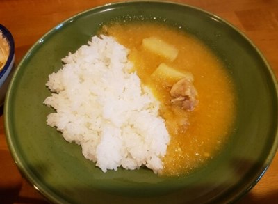 ピリ辛な味付けの「豚とじゃがいものカレー」や甘口の「エビとさつまいものカレー」などがあり、テイクアウトも可能。