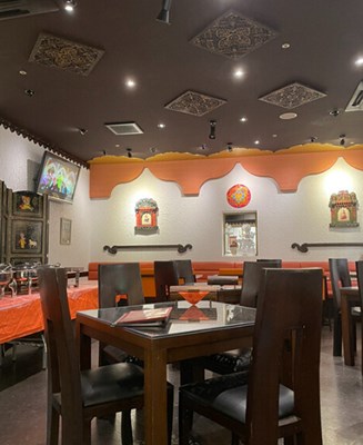 インドのレストランをイメージした店内はおしゃれで重厚感があり、繊細な彫刻が施されたテーブルや本場インドの調度品などが印象的です。