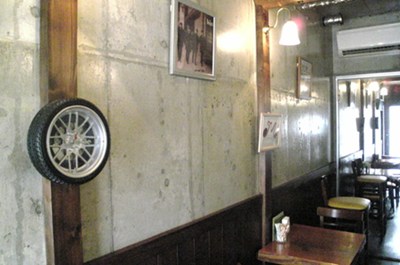 ブラウンの看板が目印で、コンクリート打ちっ放しの店内は、深いブラウンの柱やテーブルが印象的です。
