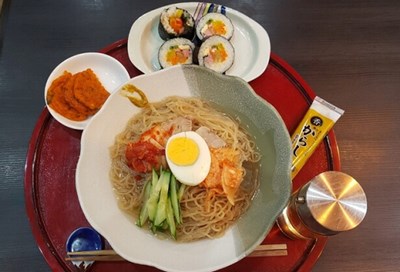 人気の韓国冷麺は、さわやかな酸味のあるスープと強い歯ごたえのある自家製麺が特徴。