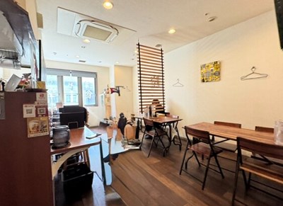 外の階段から2階へ上がると、ウッディー調で落ち着いた空間が広がります。