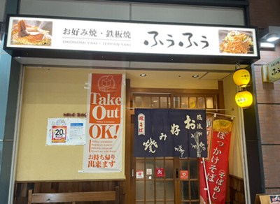 JR新長田駅より徒歩2分ところにある「お好み焼・鉄板焼 ふうふう」。