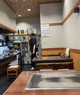 昭和の雰囲気が漂うノスタルジックな外観で、大きな鉄板で焼かれたお好み焼きを各テーブルにある鉄板に運んでくれます。