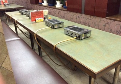 ハングル文字が書かれた入口ドアが目印で、清潔感がある店内には懐かしい「ガス焼き台」が用意されています。