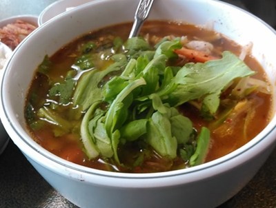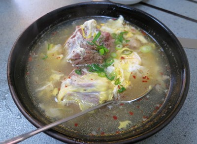 人気のホルモンスープは、ハチノスなど具だくさんのコクのあるスープ。