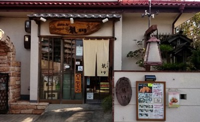 和の雰囲気がある大きな白い看板に大きな暖簾が目印です。