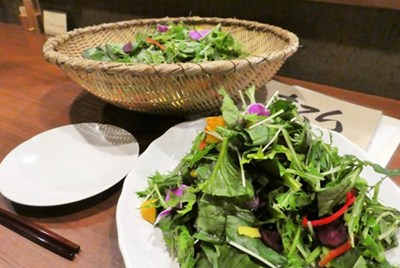 特にサラダは、自分で好きなだけお皿に盛るという斬新なスタイルで、日によってはボリューミーなサラダがお通しで取り放題で出てくることも。