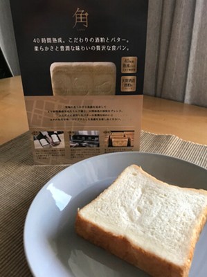 少し小ぶりな角形食パンは、かなりしっとりした目が詰まったパン生地で甘みが強く、原材料の生クリームと練乳が、バター不要なうまみを引き出しています。