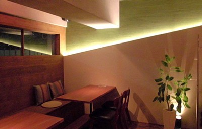 閑静な住宅街の雰囲気を壊さない外観で、木の扉を開くと間接照明で照らされるお洒落で落ち着く大人な空間が広がります。