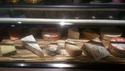カウンターのショーケースには、こだわりのチーズが並んでいます。