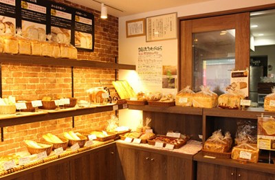 レンガ調の壁面が可愛らしいカントリー的な雰囲気の店内には、人気の食パンをはじめ菓子パン系や惣菜パン系が並んでいます。