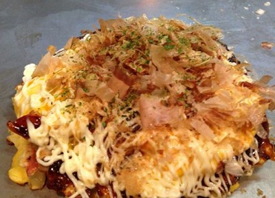 広島風と神戸風から選べ、特に薄く焼いた生地に粉かつおや具材をのせて焼く神戸風が人気です。