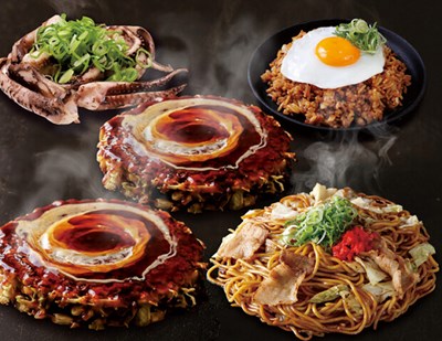 常時お好み焼で20種類、鉄板焼で30種類以上など種類豊富なメニューが魅力。