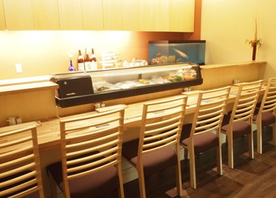 とても明るく生活感のある和モダンな空間の店内で、カウンター席からはいけすの魚が見えて高級感があります。