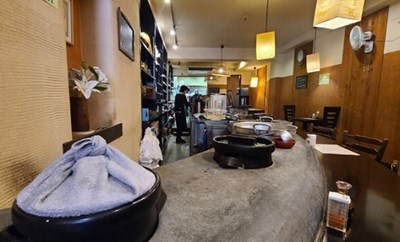 レトロな雰囲気が漂う建物の1階部分で、照明を落とした静かな店内は、和風モダンなインテリアや内装でまとめてあります。