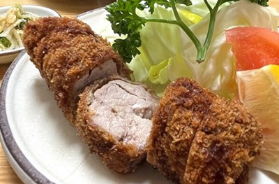 肉厚でサクサク食感の「ヘレカツ」は、柔らかくレア感が残るジューシーな揚げ具合。