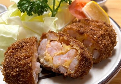 カツとえびが一緒にフライされた「えびしいかつ」は、肉厚のカツとぷりっぷりの海老が同時に味わえる逸品です。