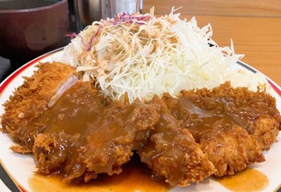 人気のトンカツ定食は、大きくて分厚いカツが2枚ものっていてボリューム感たっぷり。