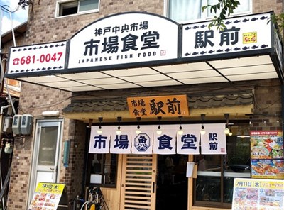JR和田岬駅より徒歩30秒のところにある「市場食堂 駅前 和田岬店」。